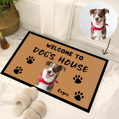 "Welcome to Dog's Cat's House" Custom Pet Doormat from Your Pets Original Photo