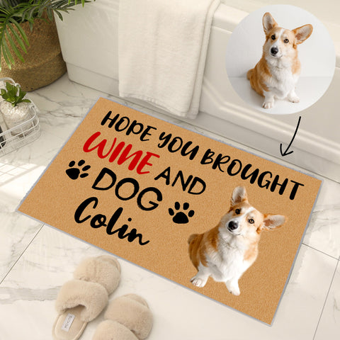 "Hope You Brought Wine and Dog or Cat "Custom Pet Doormat from Original Photo